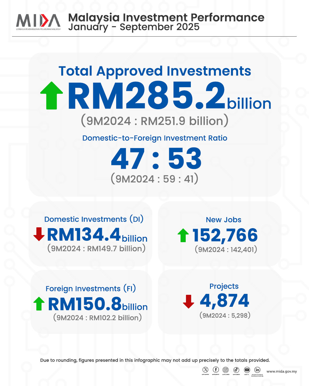MALAYSIA’S RM285.2 BILLION APPROVED INVESTMENTS IN 9M 2025 UP 13.2% Y-O-Y, DEFIES GLOBAL HEADWINDS, CREATES OVER 150,000 JOBS